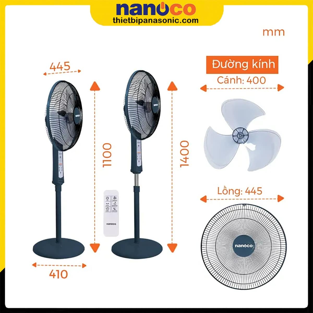 Thông số kỹ thuật quạt cây Nanoco NSF1602G-RCB