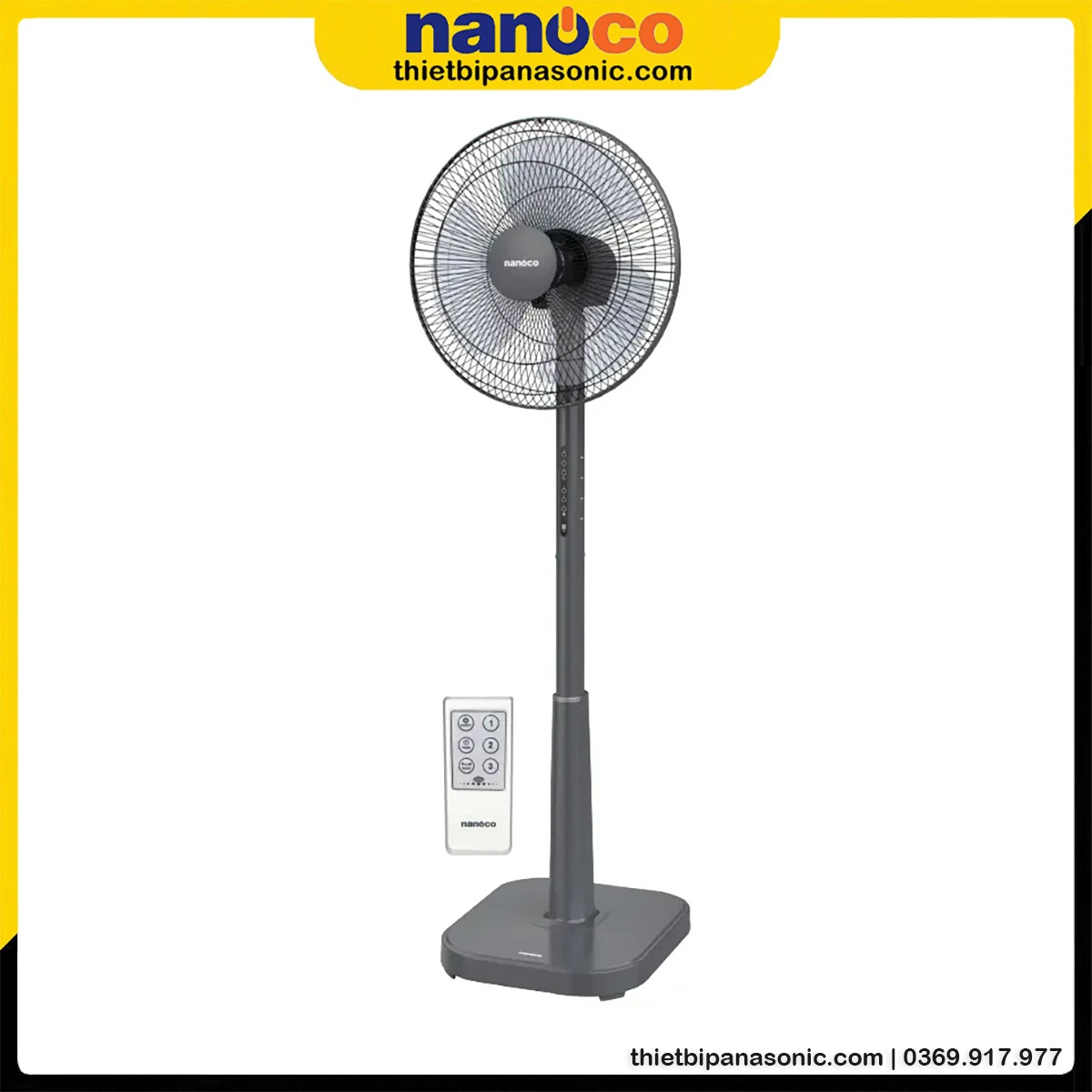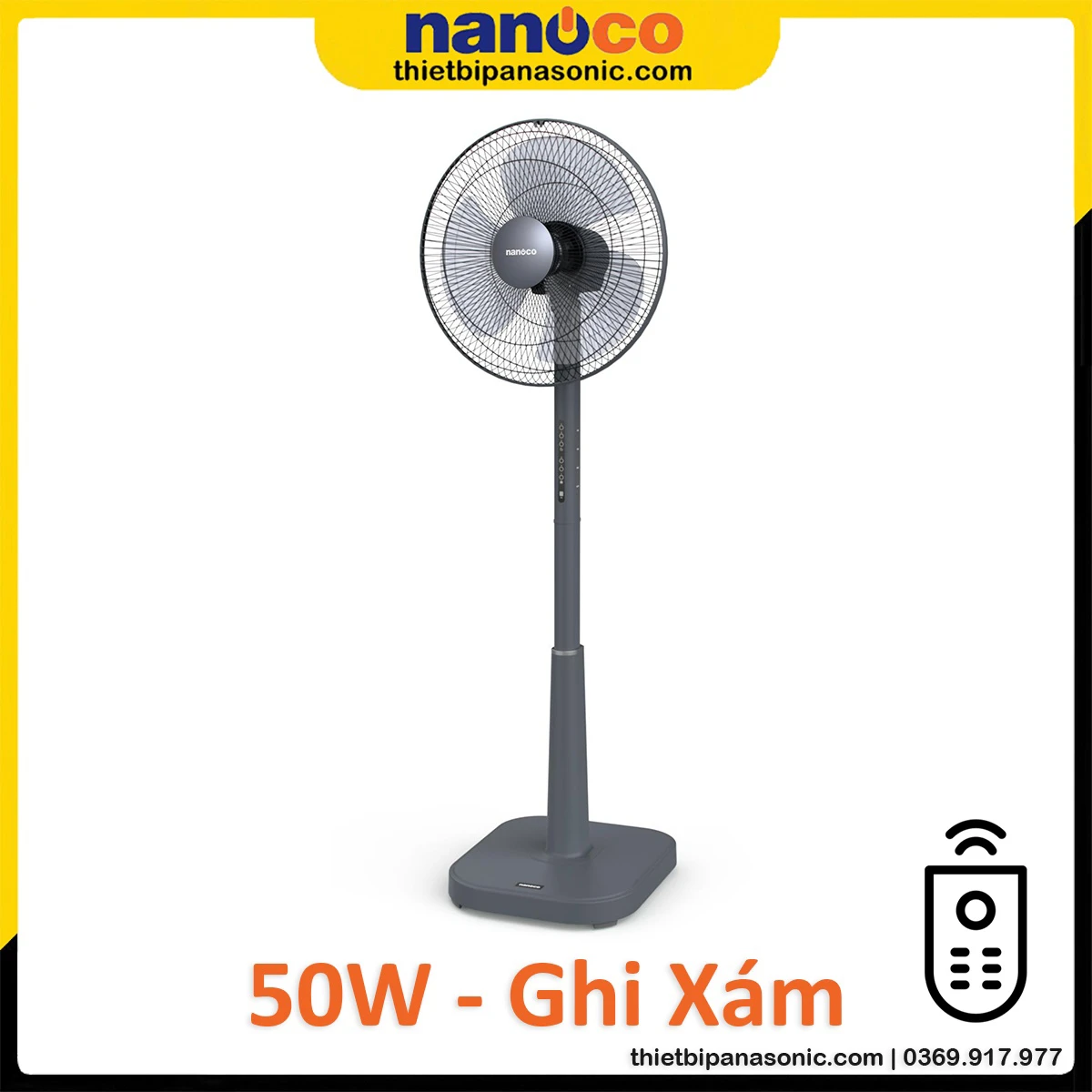 Quạt đứng Nanoco NSF1641RC-GR Màu Ghi, Bạc Đạn, 50W, Remote