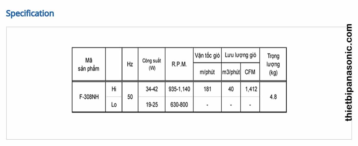 Thông số cơ bản của quạt cây Panasonic F-308NHP