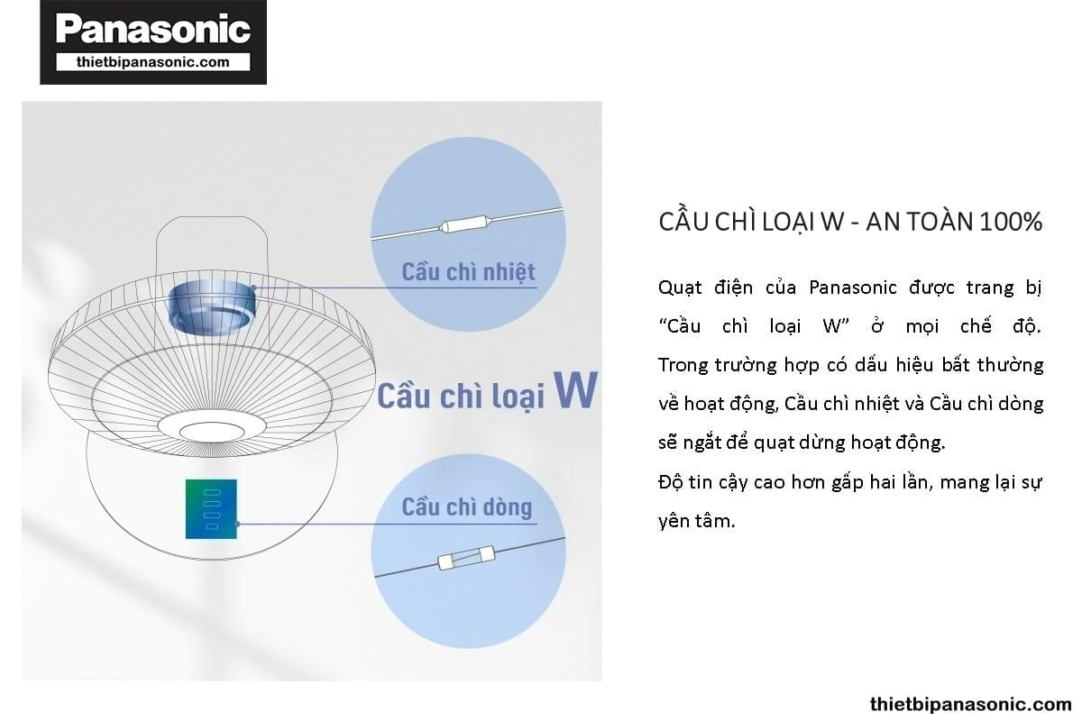 Quạt cây Panasonic F-409KMR được trang bị cầu chì loại W ở mọi cấp độ gió giúp đảm bảo an toàn khi sử dụng