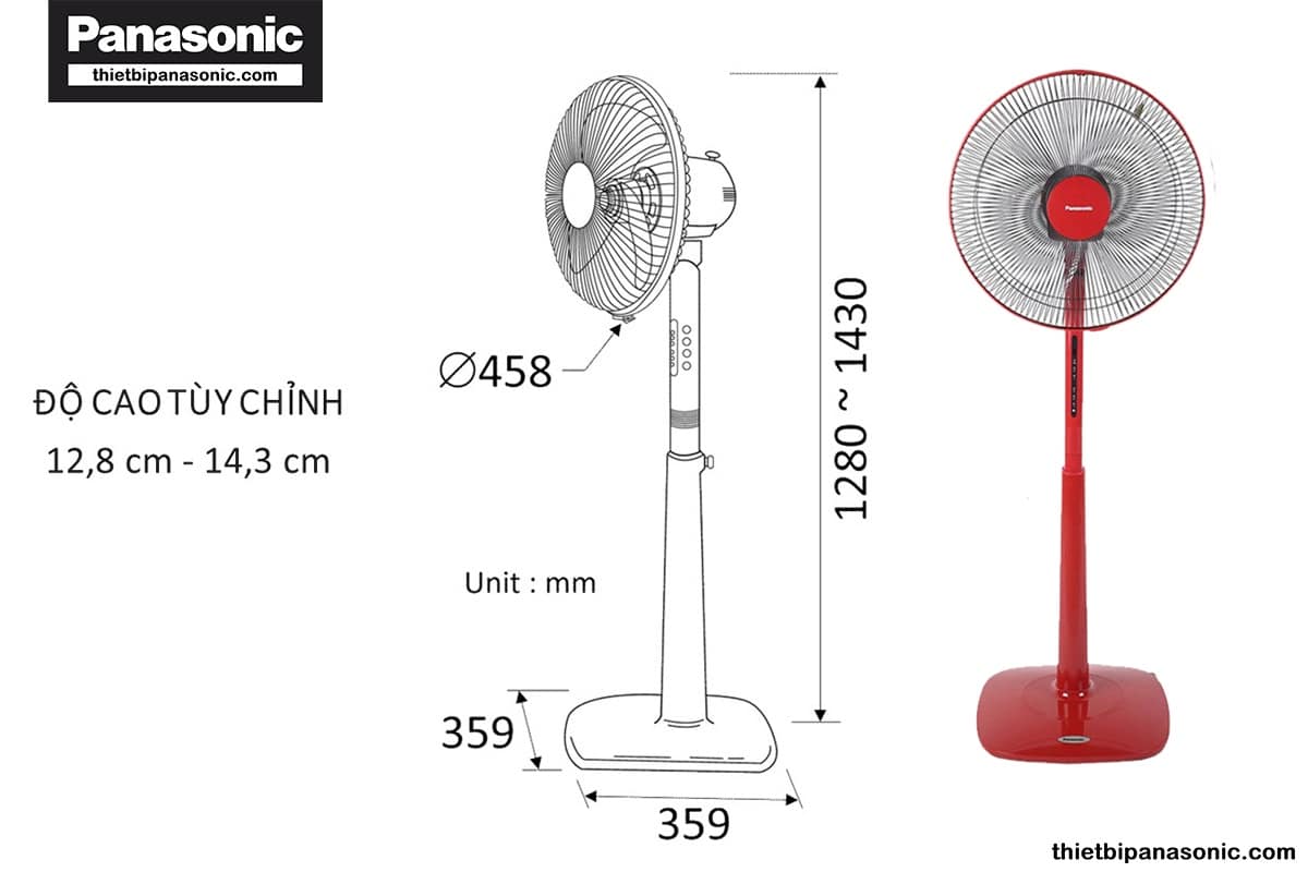 • Chiều cao quạt 128cm – 143cm