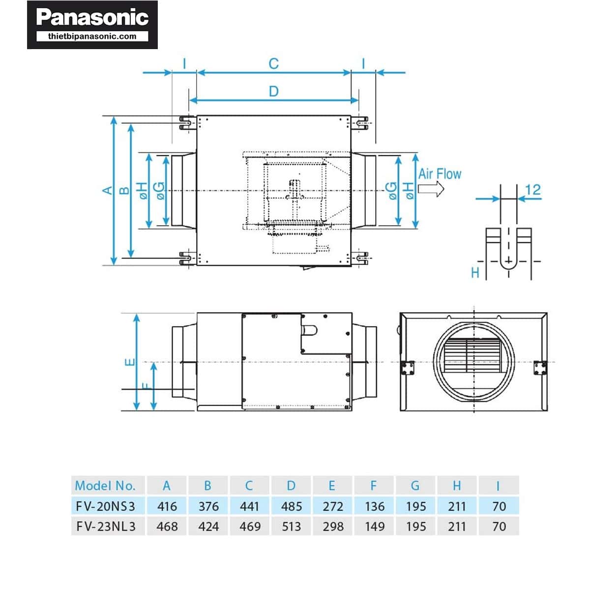 Thông số kỹ thuật của Quạt thông gió Cabinet Panasonic FV-23NL3