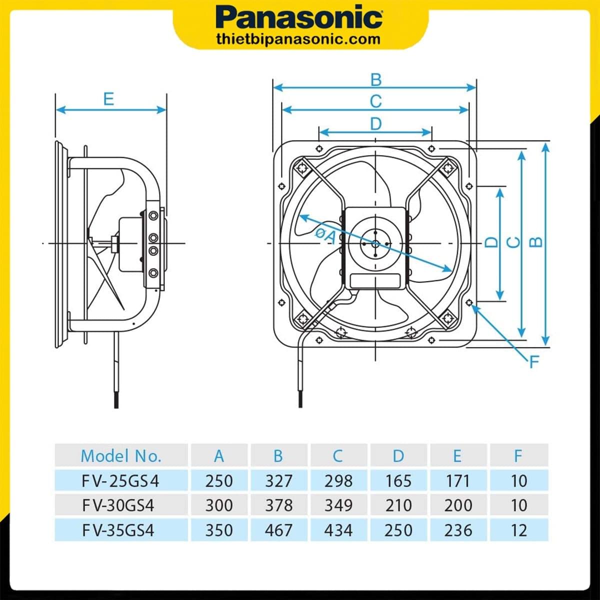 Thông số kỹ thuật của Quạt thông gió công nghiệp Panasonic FV-25GS4
