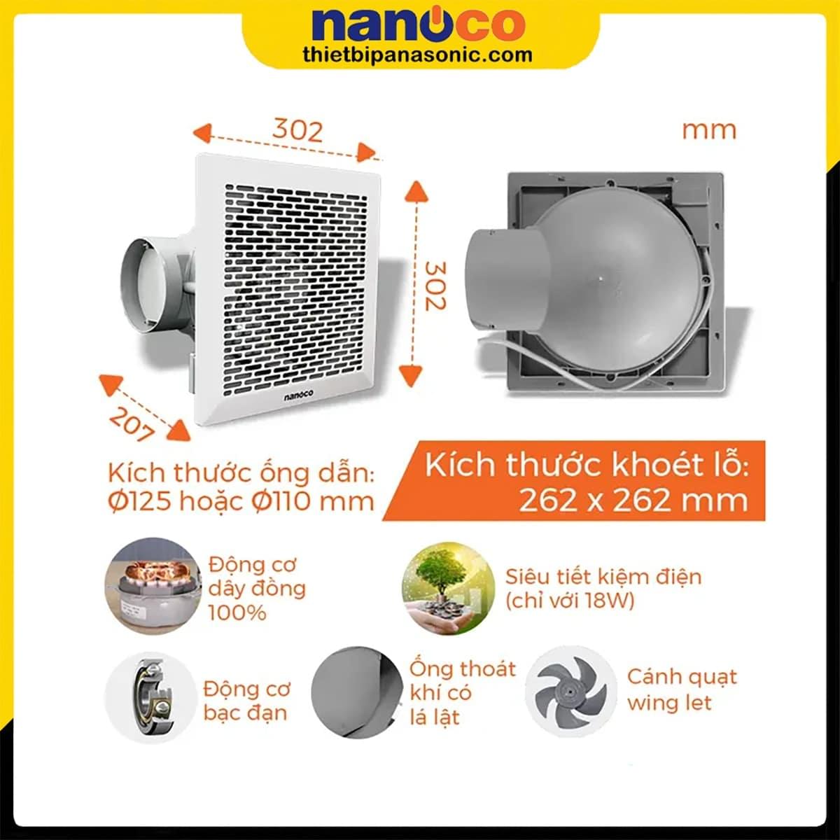 Quạt hút âm trần Nanoco NCV2020-C 18W (có ống dẫn)