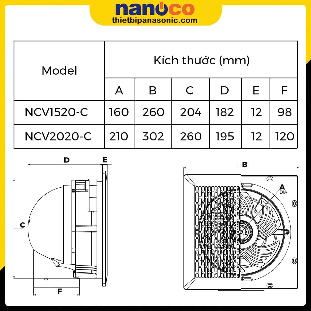 Dưới đây là thông số kỹ thuật của Quạt hút âm trần Nanoco NCV2020-C, Quý khách có thể dễ dàng theo dõi cũng như so sánh với các mẫu khác