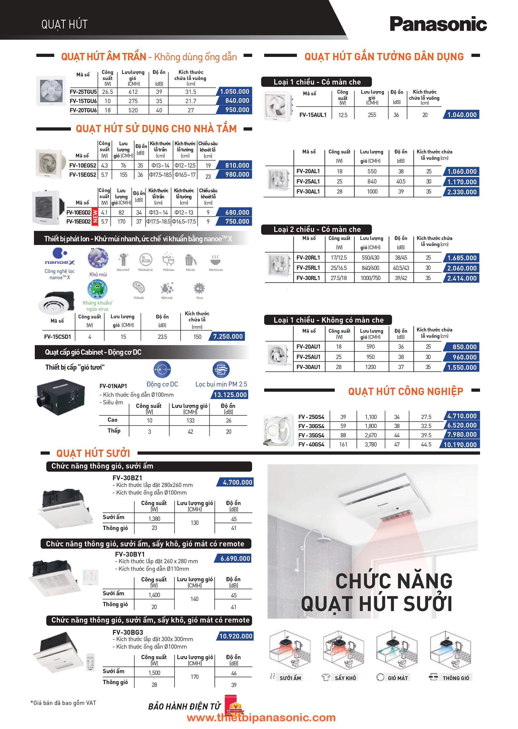 Tổng Kho Panasonic chuyên phân phối các loại quạt hút, quạt thông gió của thương hiệu Panasonic và Nanoco với giá tốt nhất, bảo hành 24 tháng chính hãng.