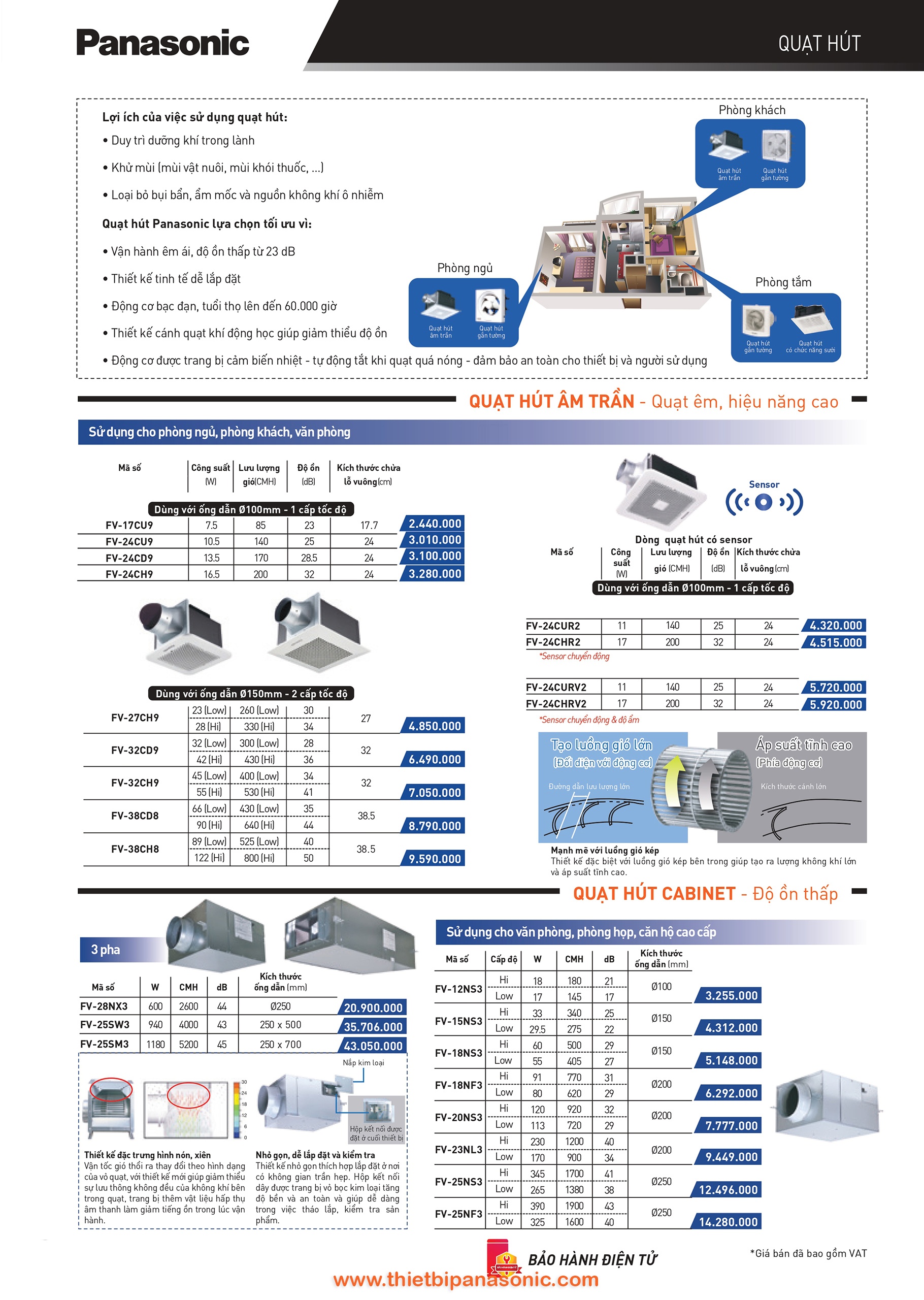 Quạt hút Cabinet Panasonic, Quạt hút âm trần Panasonic, Quạt hút công nghiệp Panasonic