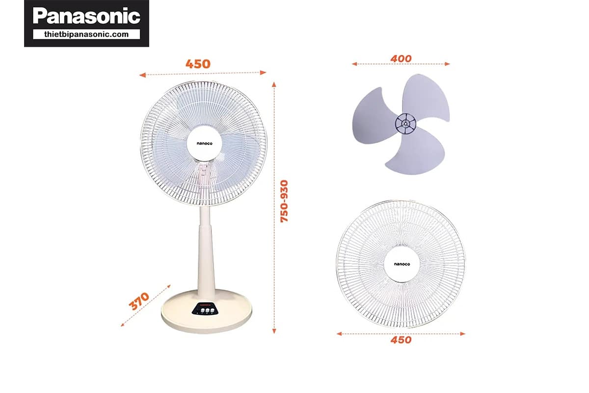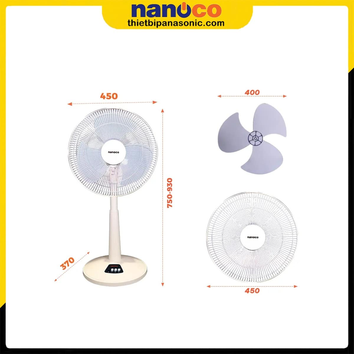 Cấu tạo từng thành phần và kích thước của Quạt Nanoco NLF1623BE Màu Be