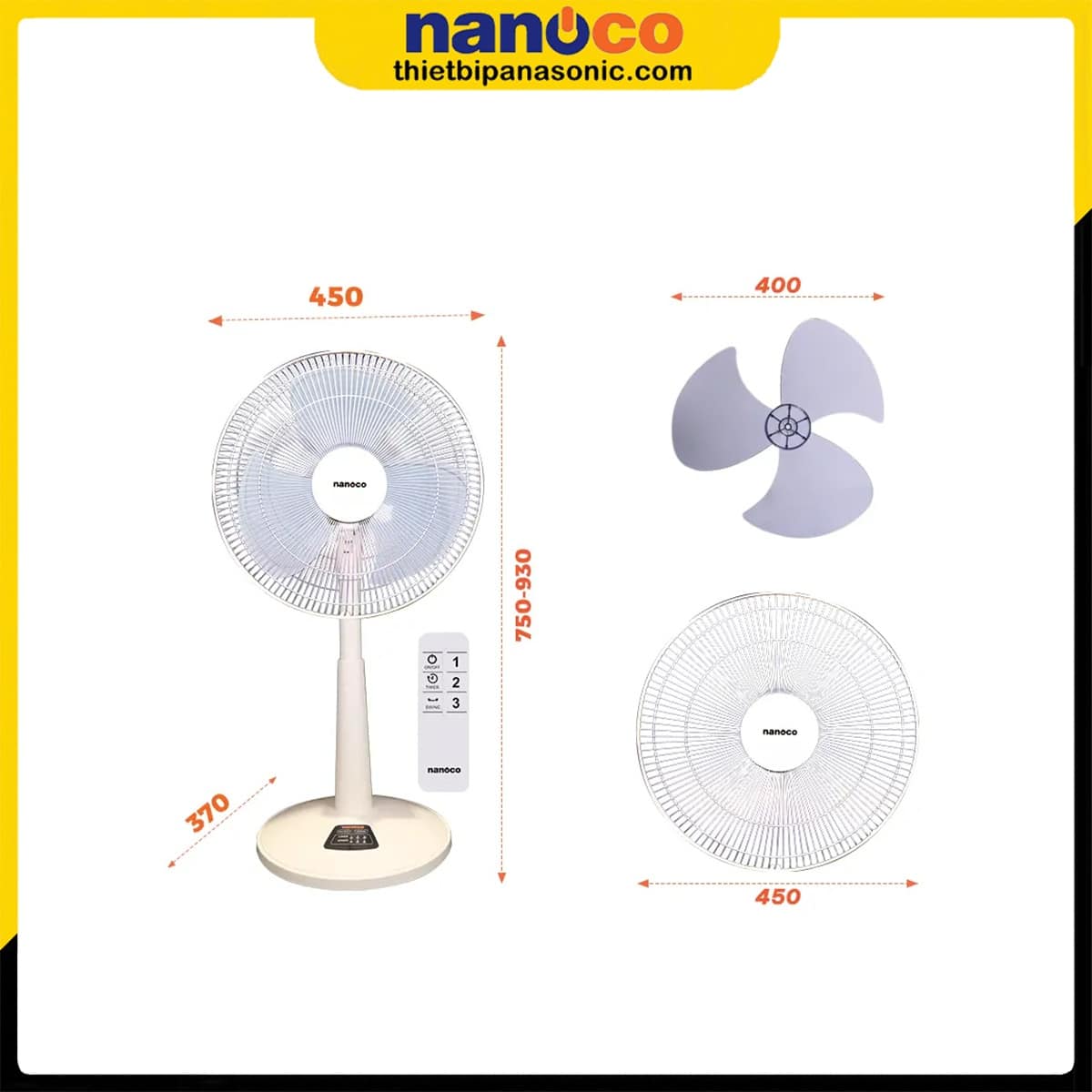Thông số kỹ thuật của quạt đứng Nanoco NLF1624RC-BE có Remote