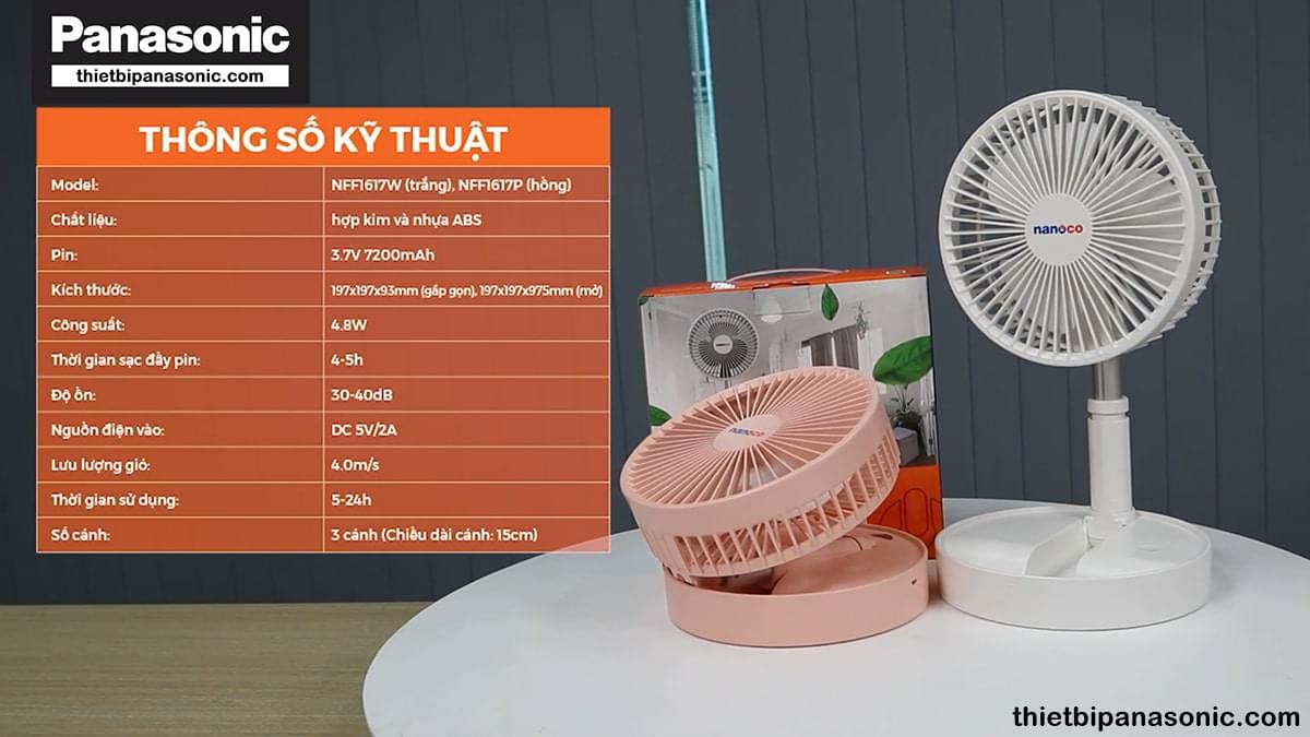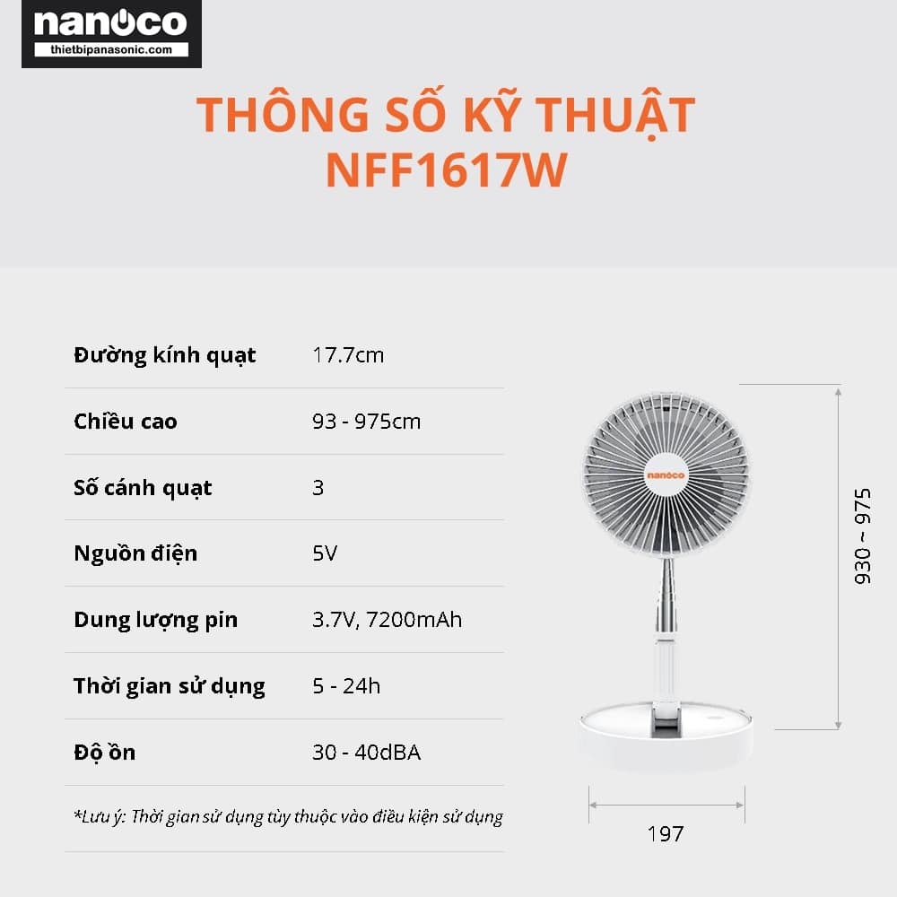Thông số kỹ thuật của quạt sạc gấp gọn Nanoco NFF1617W