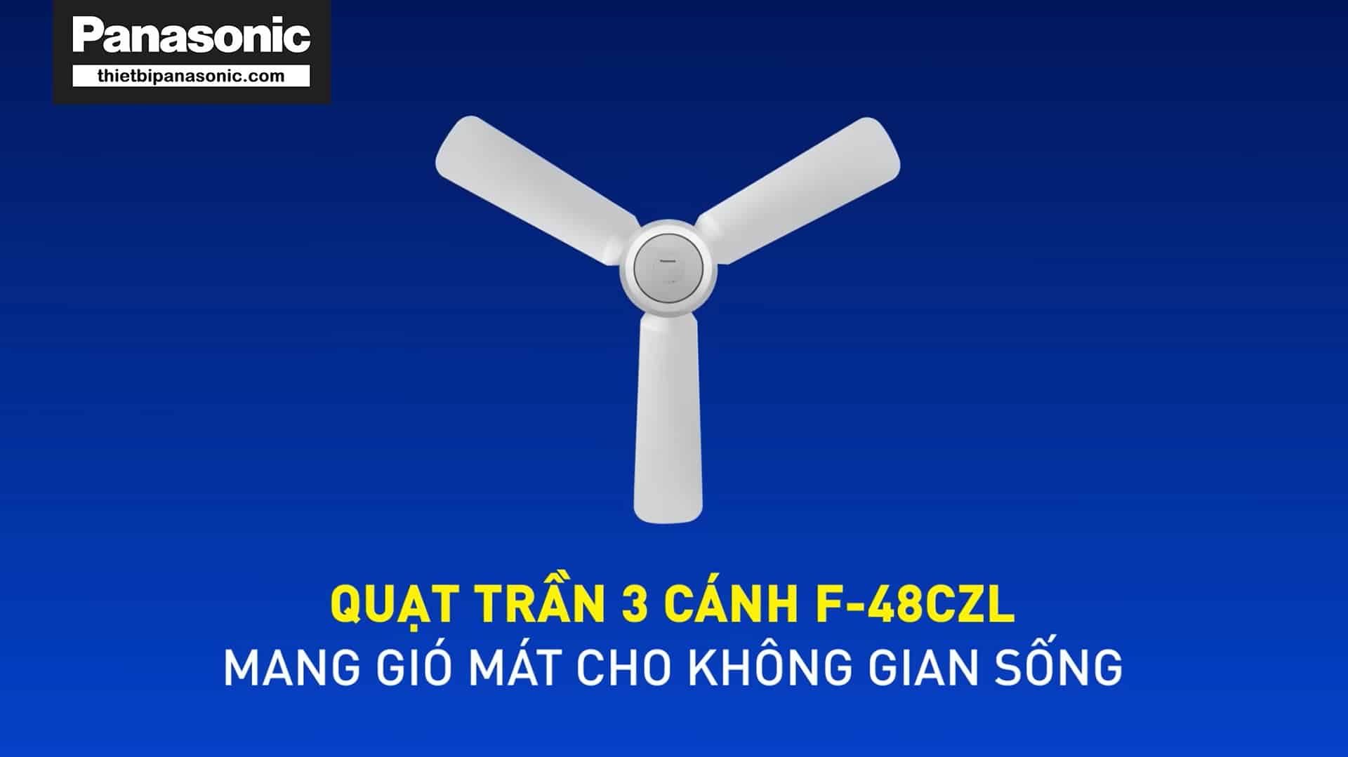 - Quạt trần Panasonic F48CZL được thiết kế với hệ thống 3 cánh quạt màu trắng, độ dài mỗi cánh là 120cm, không chỉ mang lại vẻ đẹp tinh tế cho không gian mà còn không làm tốn diện tích của khu vực lắp đặt.