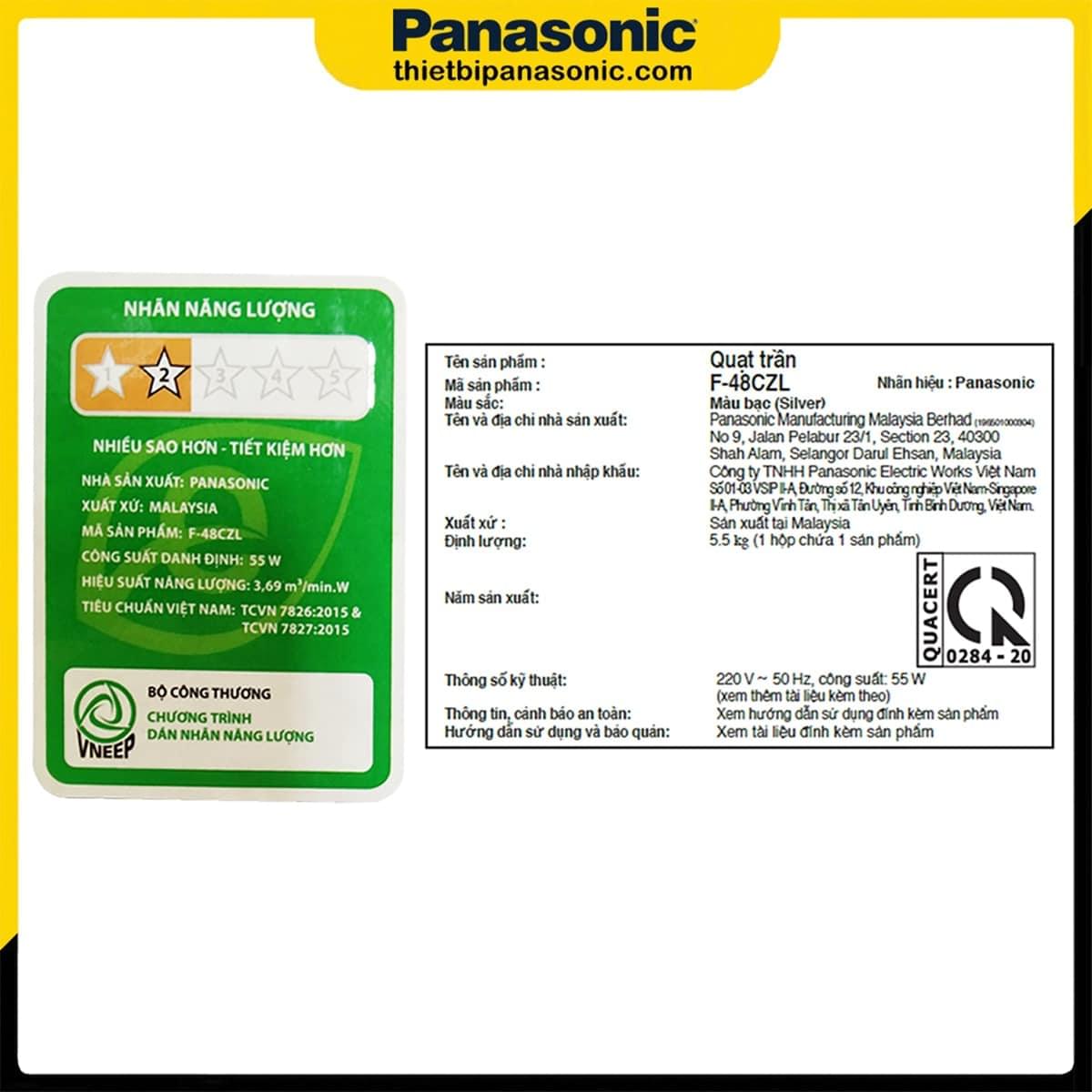 - Giá bán quạt trần Panasonic F-48CZL tại Tổng kho Thiết bị điện Panasonic chỉ 4.390.000 đồng. Với các tính năng đi kèm thì giá thành của mẫu quạt trần này là vô cùng hợp lý.