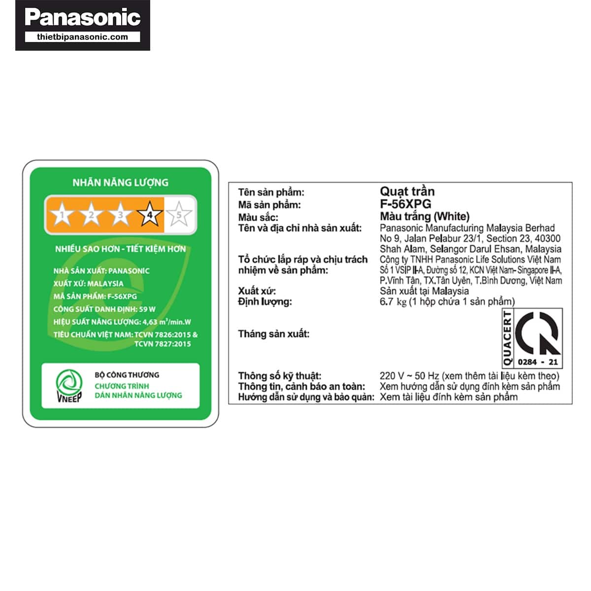 Nơi bán quạt trần Panasonic F-56XPG-W chính hãng, giá tốt tại TPHCM