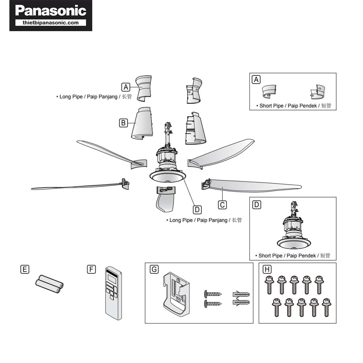 Tham khảo catalogue quạt trần 5 cánh Panasonic Tại Link