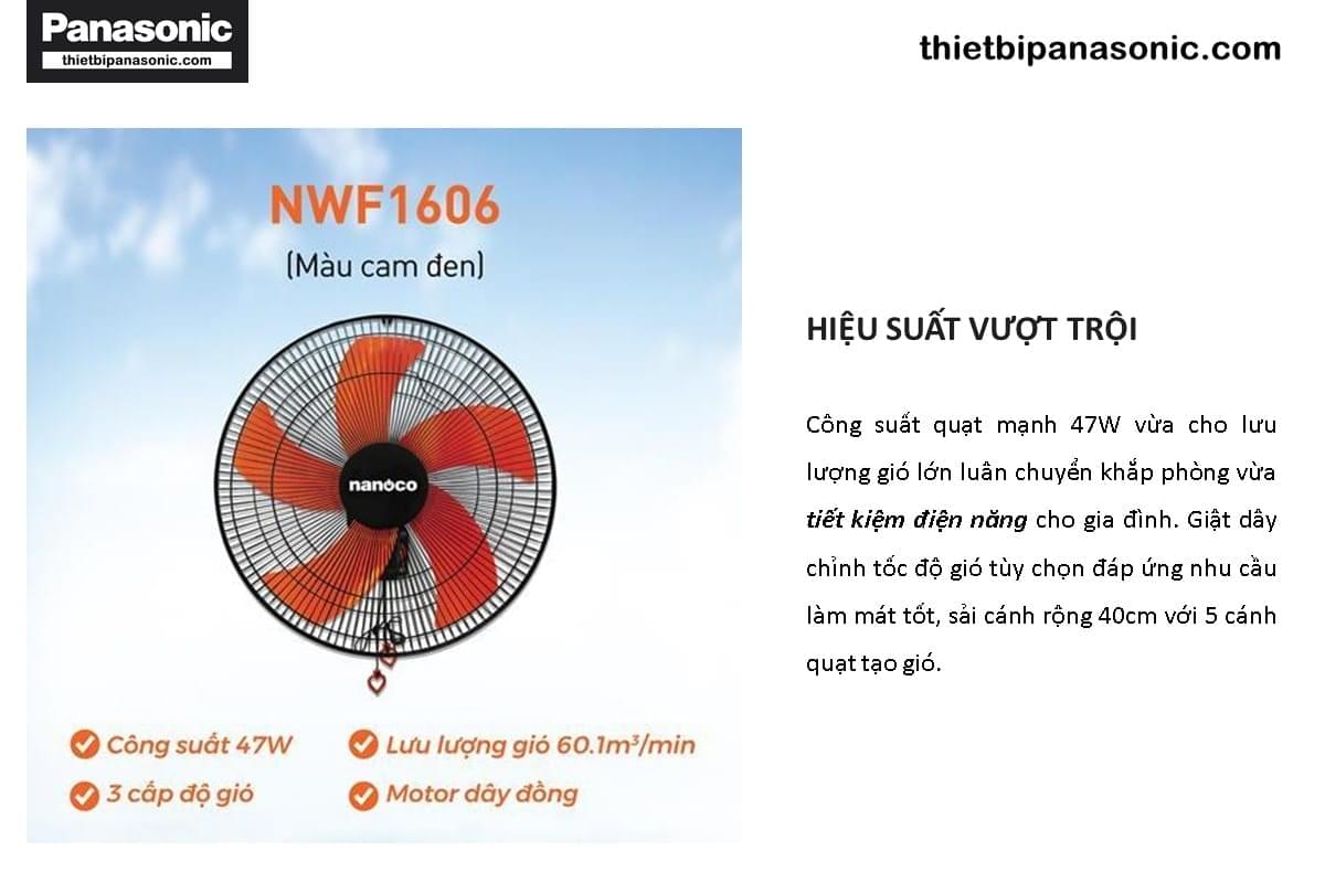 Quạt treo tường Nanoco NWF1606 có hiệu suất vượt trội với công suất lên tới