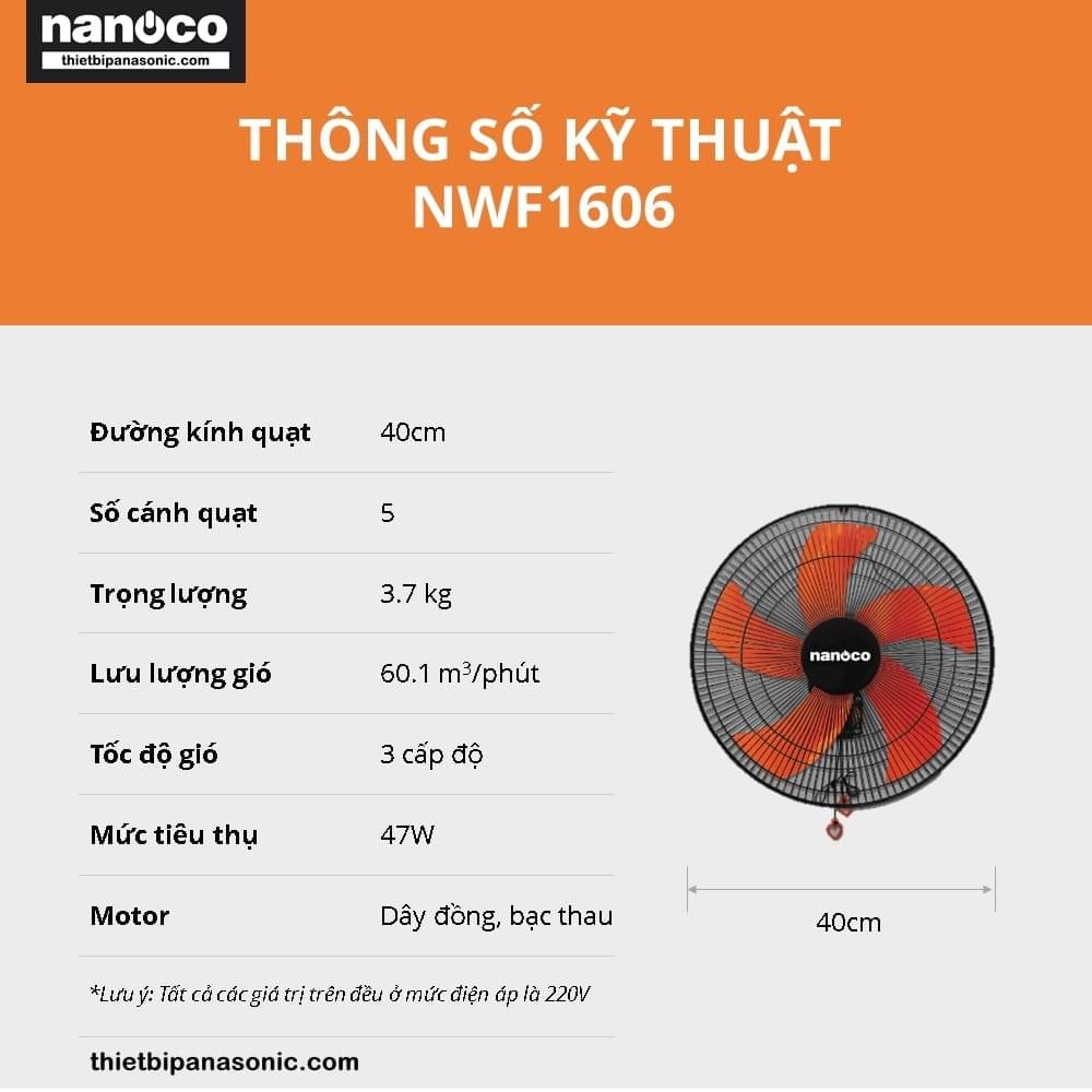 Thông số kỹ thuật của Quạt treo tường Nanoco NWF1606