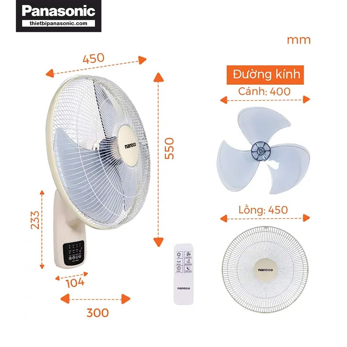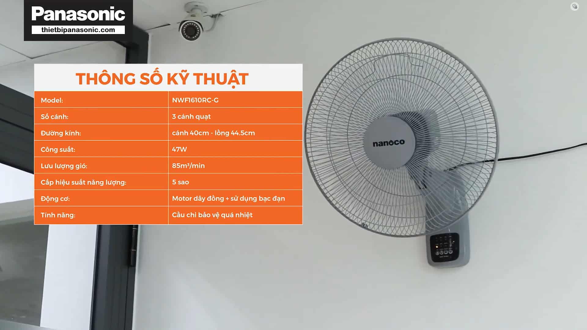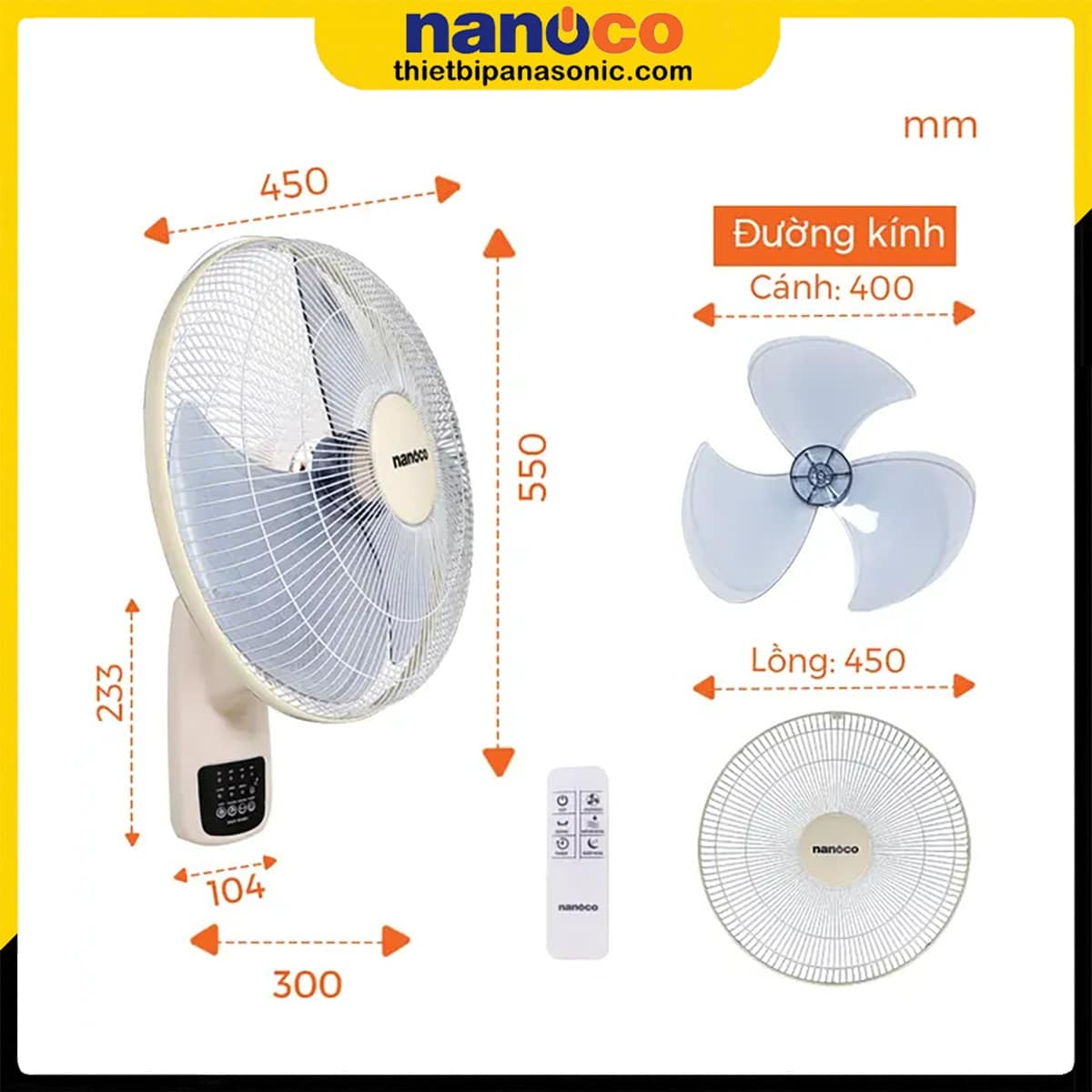 | Loại quạt | Quạt treo tường Nanoco, Quạt treo tường Panasonic |