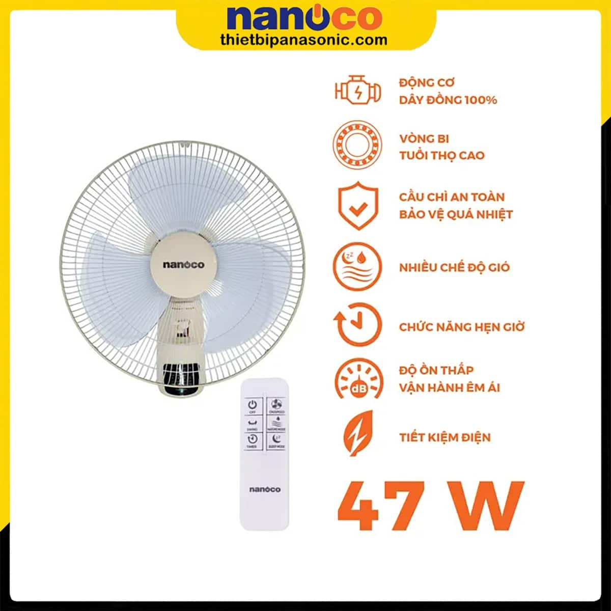 Trong đó, quạt treo tường Nanoco NWF1610RC-BE là một trong những sản phẩm quạt treo tường chất lượng của Nanoco, được bán tại Tổng Kho Thiết Bị Điện Panasonic với giá cả hợp lý và chính hãng.