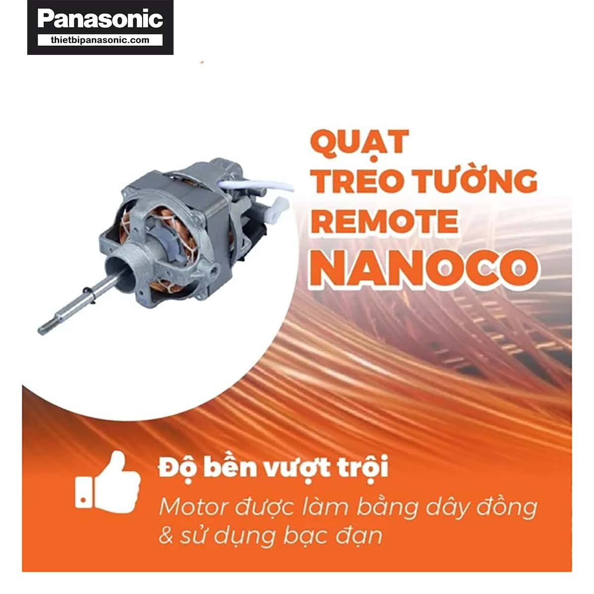 Quạt treo tường Nanoco NWF1610RC-BE được trang bị motor dây đồng và sử dụng bạc đạn, giúp hoạt động êm ái và độ bền cao.