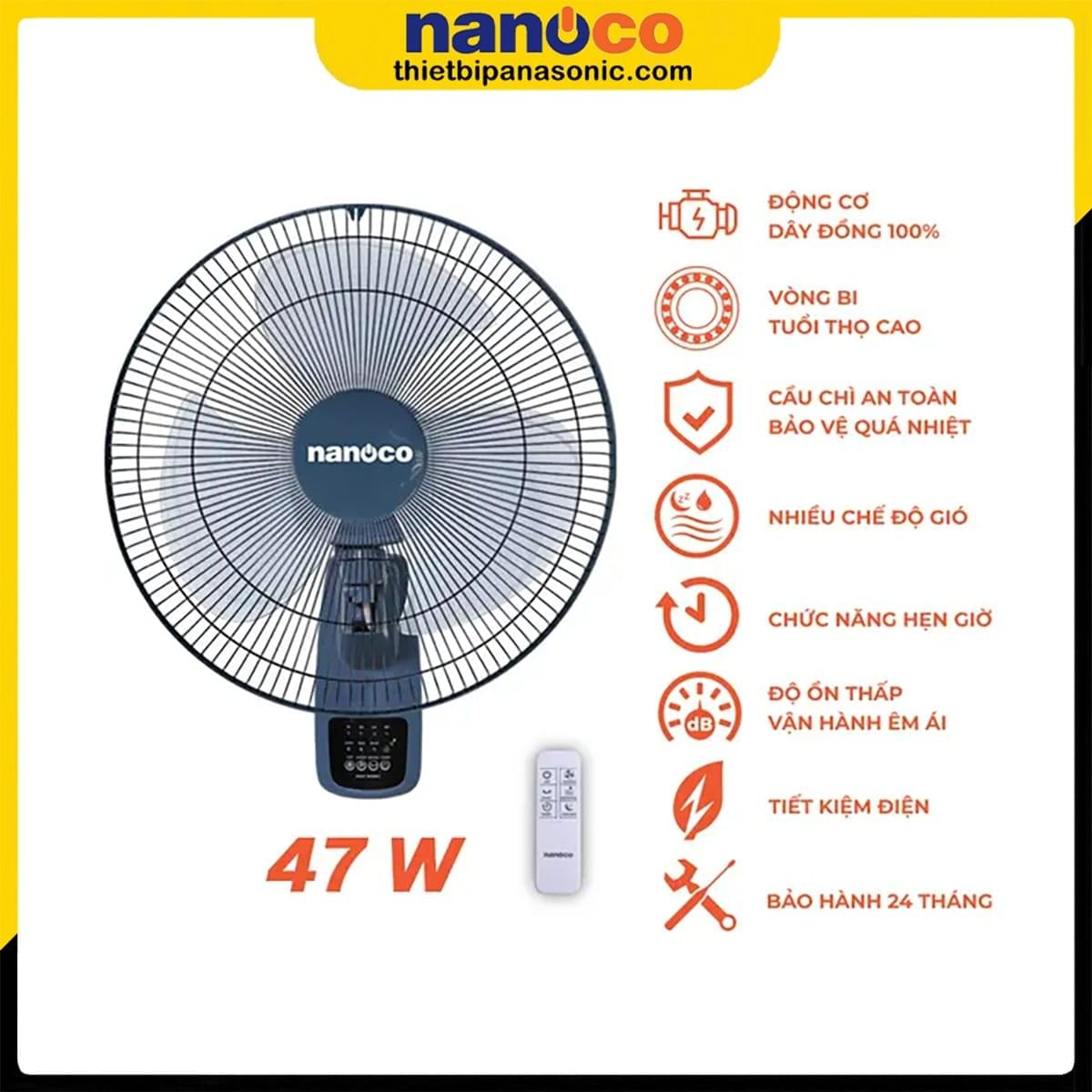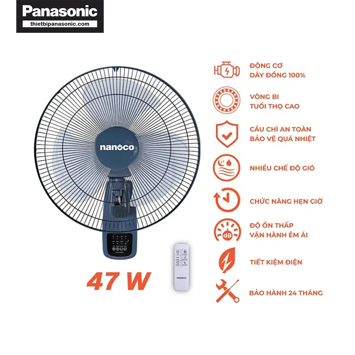 Trong đó, quạt treo tường Nanoco NWF1610RC-BL là một trong những sản phẩm quạt treo tường chất lượng của Nanoco, được bán tại Tổng Kho Thiết Bị Điện Panasonic với giá cả hợp lý và chính hãng.