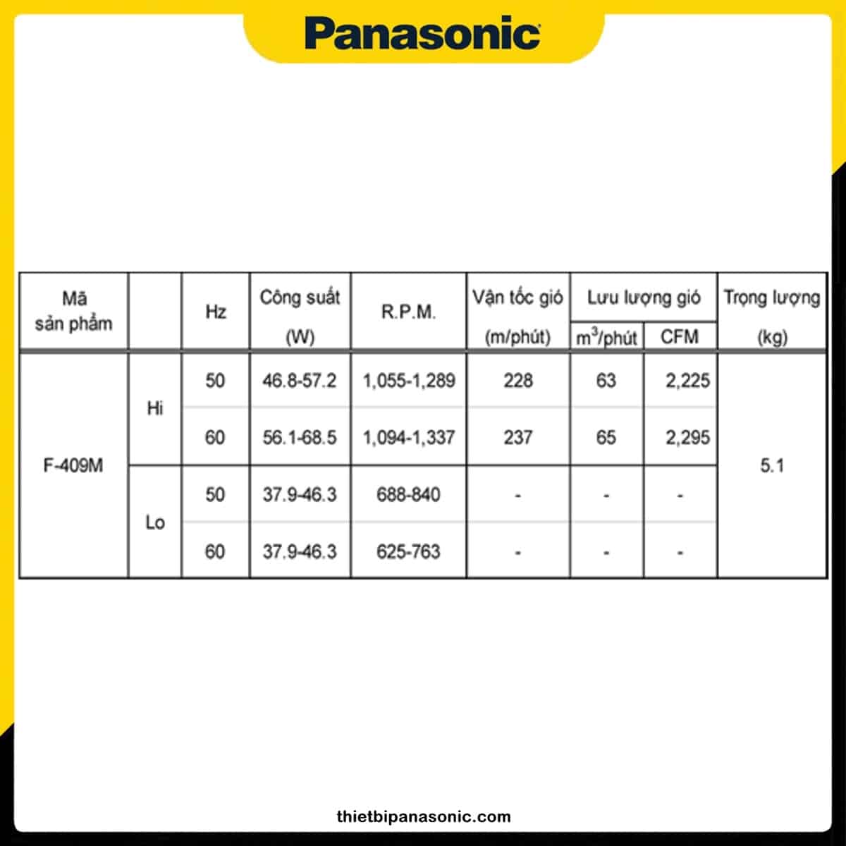 Thông số kỹ thuật của quạt treo tường Panasonic F-409MB