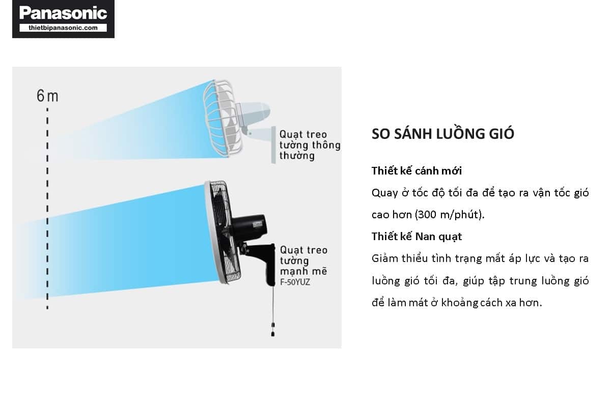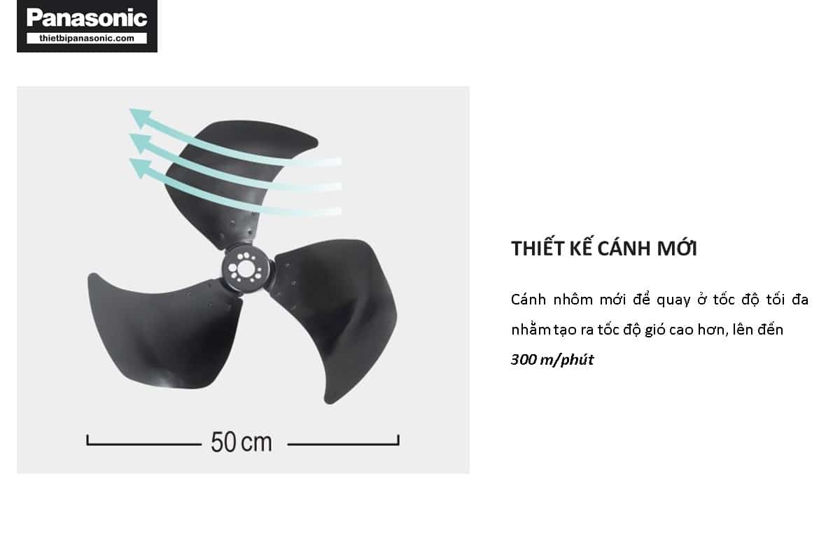 Quạt treo tường Panasonic F-50YUZ với cánh nhôm mới quay ở tốc độ tối đa nhằm tạo ra lưu lượng gió cao hơn