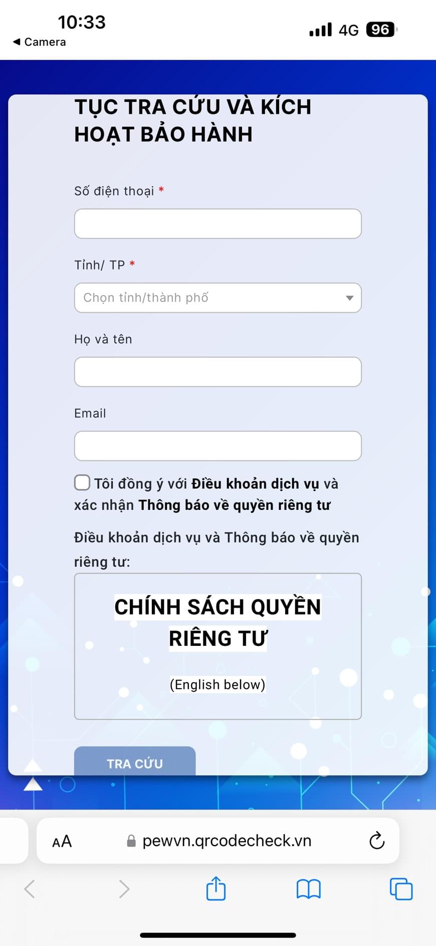 Tra cứu tem chống hàng giả trên các sản phẩm khác - Bước 1