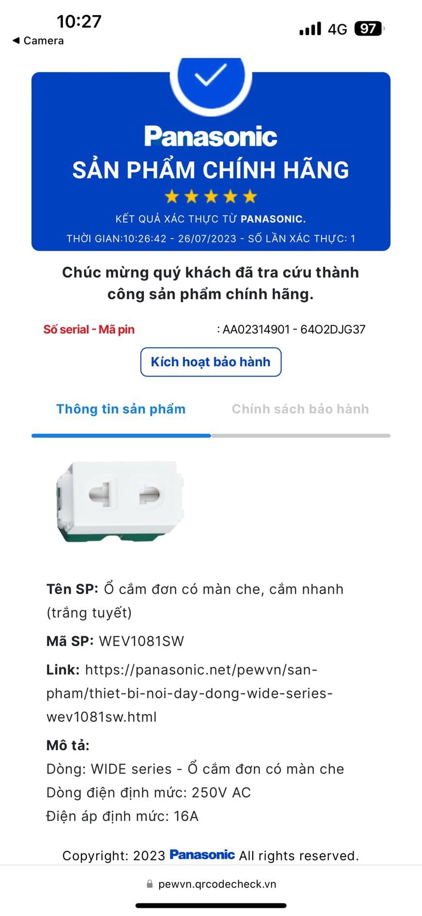 Xác thực hàng chính hãng Panasonic bằng tem QR trên sản phẩm